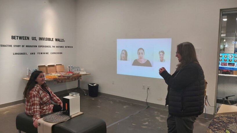 In Her Words is a single-channel video installation featuring interviews with seven Iranian women migrants. Presented in Farsi and English, the work invites quiet observation and reflection on migration, identity, and emotional part of migration.