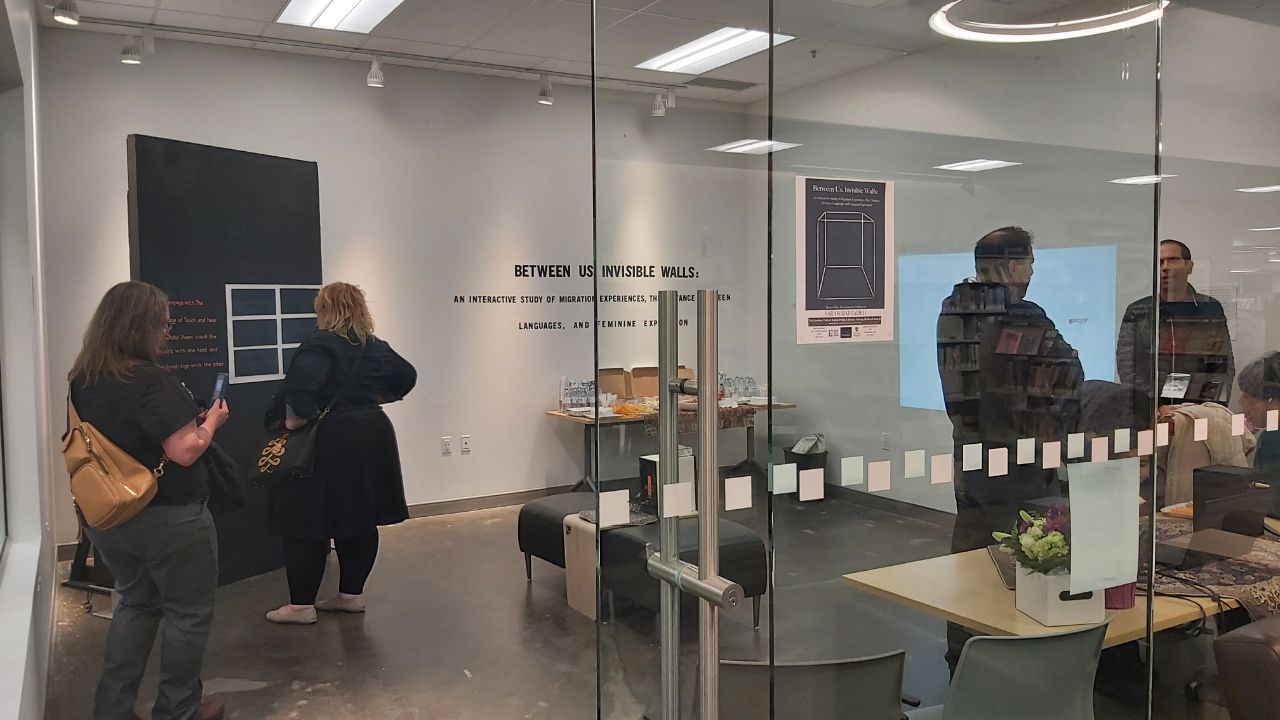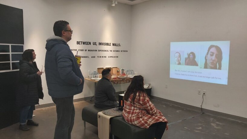 My MFA exhibition, Between Us, Invisible Walls held at The Creation Cube gallery at the George Bothwell Branch of the Regina Public Library (2025).